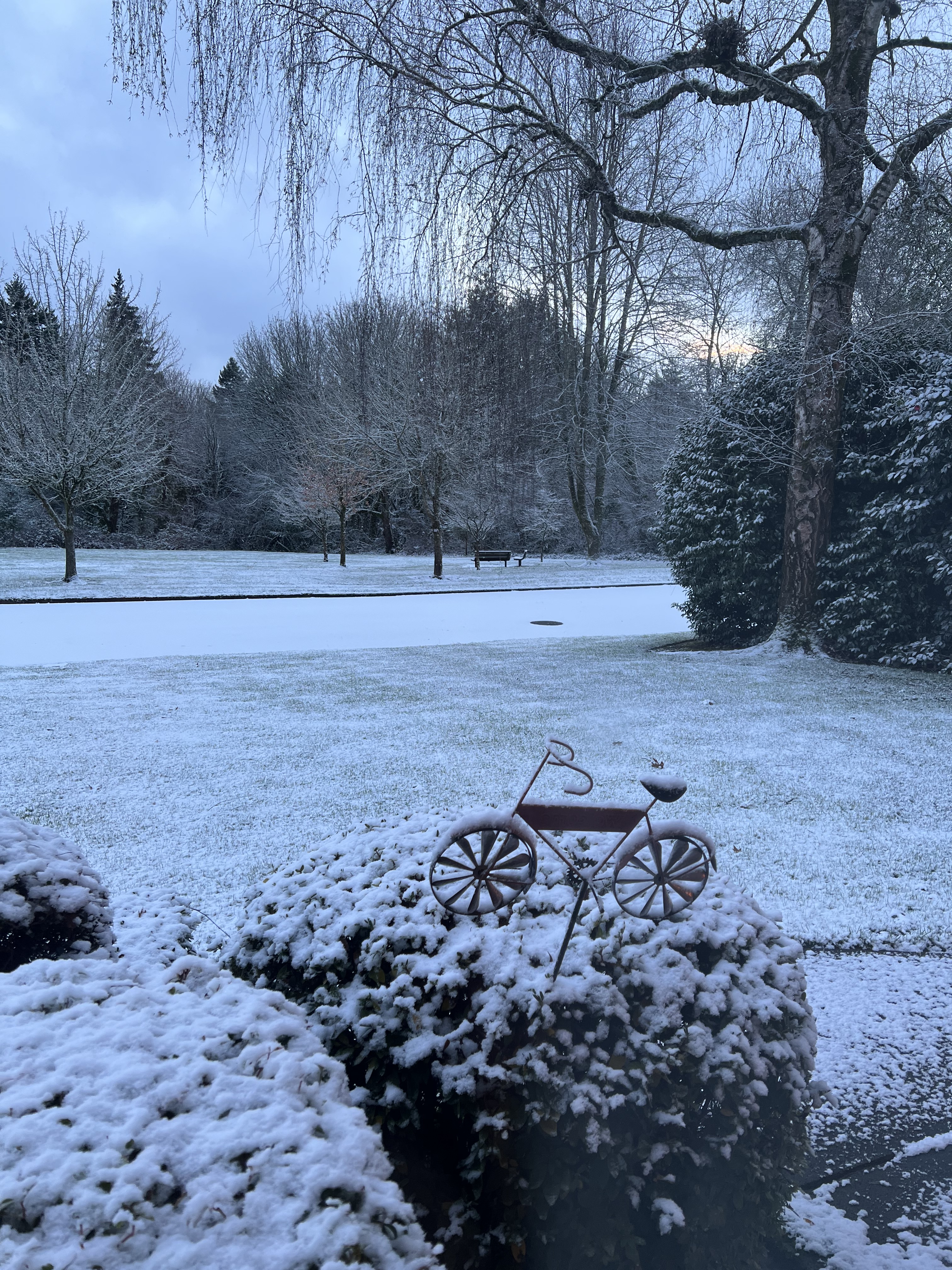 The weather system was of course delayed from Hawaii or something so it didn’t arrive when is was supposed to but whatever, weather is like that. It arrived Saturday and it wasn’t all that bad. A dusting as we say around here. Nothing too significant. Pretty but would likely be gone in a few hours. The wind up. Hear the sing-songy tune? Keep winding and one more turn, nothing yet, still nothing… POP!