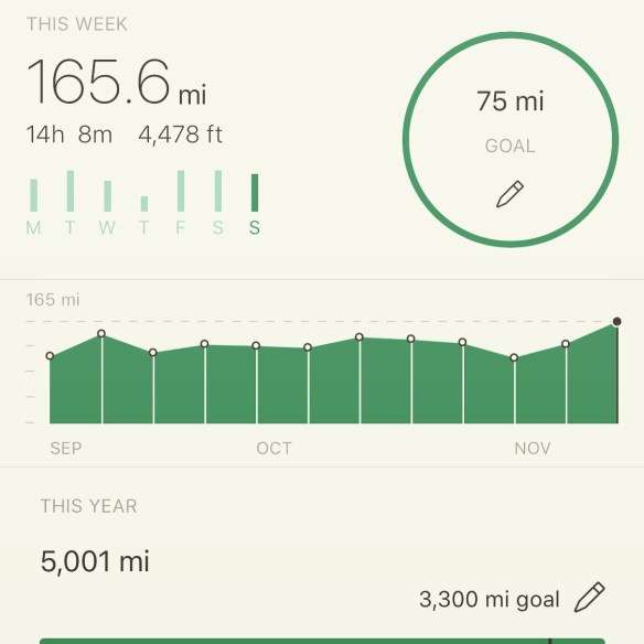 There are athletes on Strava and I don’t think of myself as an athlete. I bike for myself and the environment and I put one pedal in front of the other every day and with five weeks left in the year I hit a milestone. There will be more miles, but right now, today, there’s 5001 and some of those miles were in faraway places. I pedaled each one. There’s that saying about there’s no such thing as luck. It’s just opportunity meeting preparation. I think for me it’s a spoke of good luck. Tomorrow is another day and my usual 20 and that’s what moves me forward. How about you?
