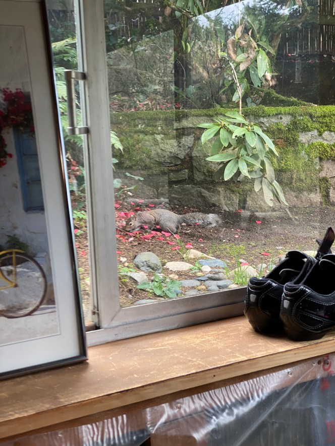 I watched a squirrel watch me while I was Zwifting and despite my efforts to photograph the blur I can’t help but ponder ways I can get better shots in the future. I started by cleaning the windows.