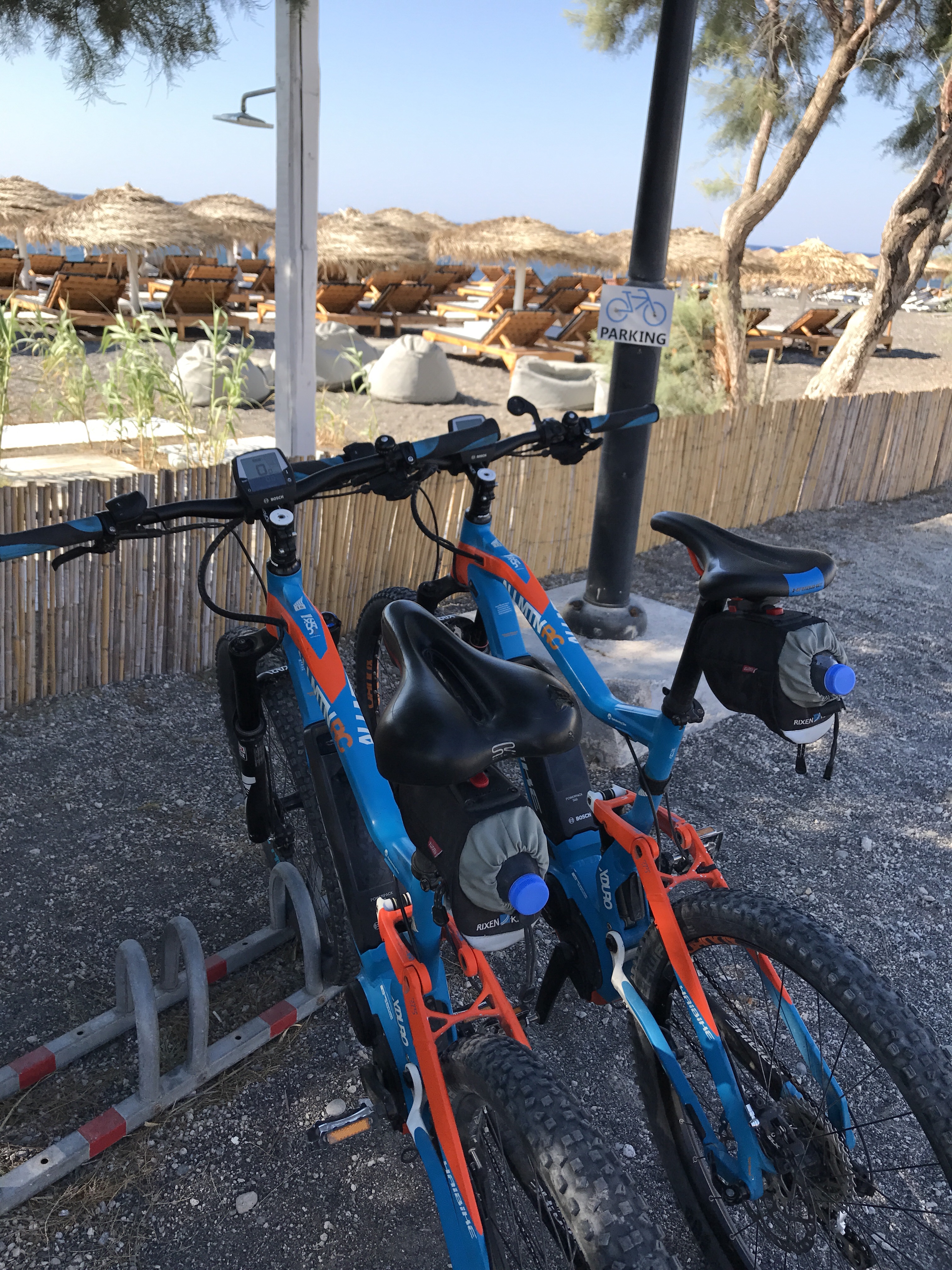 The adventure started at Perissa Beach. I don’t remember much about the beach at the beginning of the trip because all I wanted to do was hike my leg over this bike and get going.