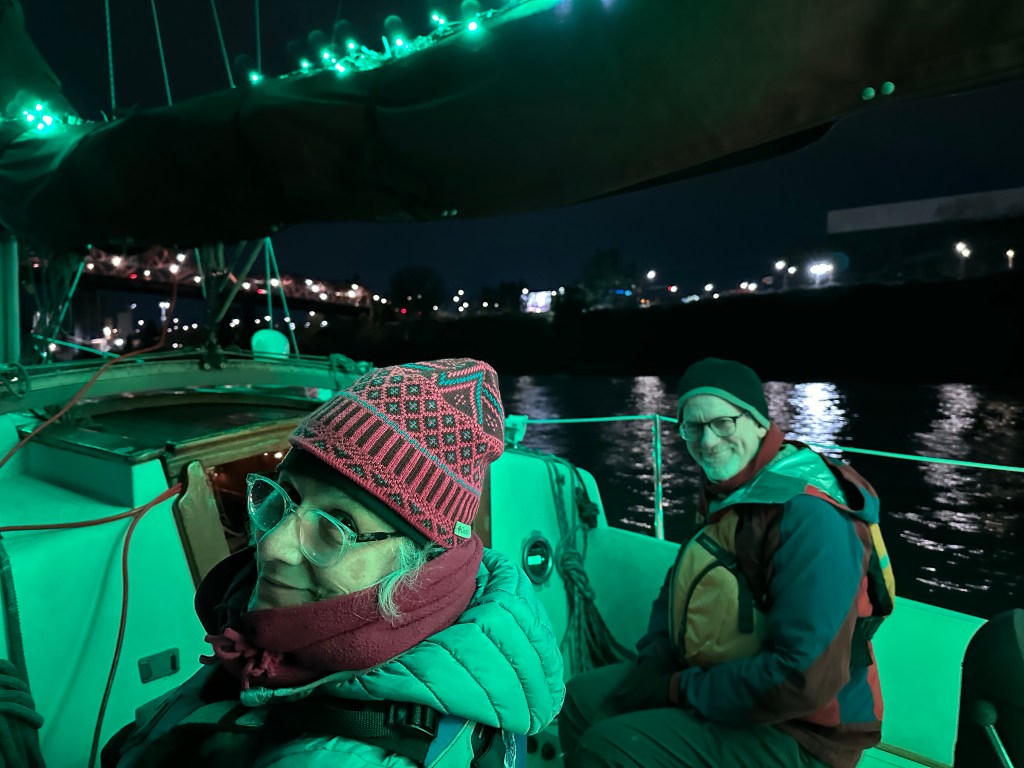 Also I had some new experiences on water not land when my guy and I joined the Christmas Ship parade on the Columbia and Willamette rivers. Even though we thought we’d only do a couple nights, we ended up participating in seven of the 13. This is the 69th year of the Christmas Ships parade and I’m happy to report that both our boat and our marriage survived.