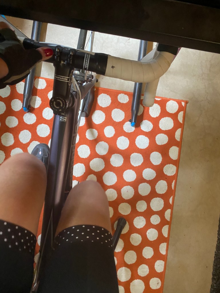 I bought a Wahoo Kickr to have a bike set up in case I couldn’t ride due to weather. It was my backup riding plan. Zwifting was essential to getting my weekly mileage. Since the start of the pandemic I have been trying to continue getting my weekly mileage, however, some days I go toe-to-toe with the blahs and I don’t feel like going outside. It’s easier to put on my kit and Zwift inside.